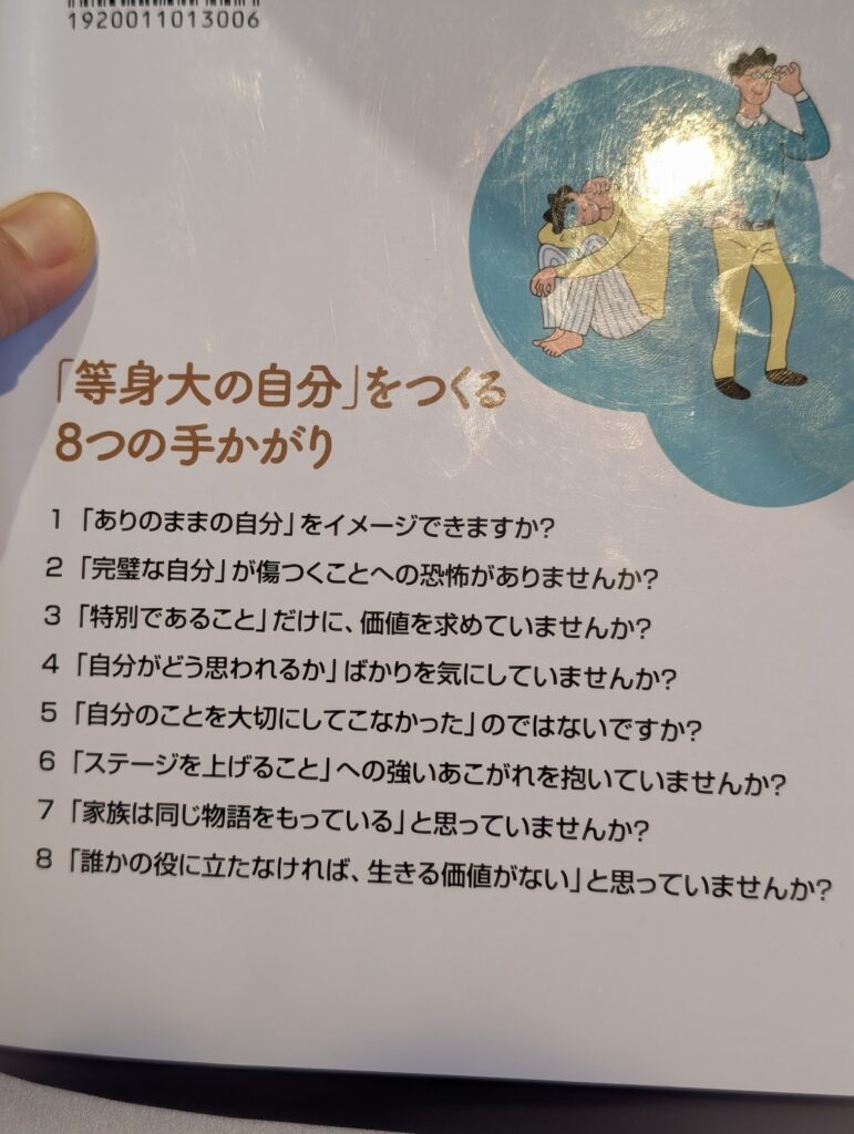 そして何より、「等身大の自分」を作る8つの手がかりが収録されているところが大きなポイントだと思います。ここが自己愛性パーソナリティー障害で生きづらさを感じている人にとって鍵となる内容のではないでしょうか?